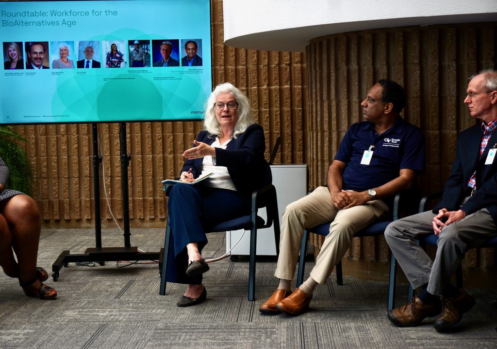 At Manus, Commissioners were welcomed to Augusta by Mayor Garnett Johnson and heard a presentation on Georgia as a growing biomanufacturing hub from Bob Kosek, Division Director of Global Commerce at the Georgia Department of Economic Development. The Commissioners then joined two roundtable discussions. The first was a deeper dive into using biotechnology as a tool to build resilient critical supply chains. The Commission’s research shows that biotechnology can secure critical U.S. supply chains beyond just those for medicine and pharmaceuticals, and new biotech-powered supply chains would be secure from foreign influence.